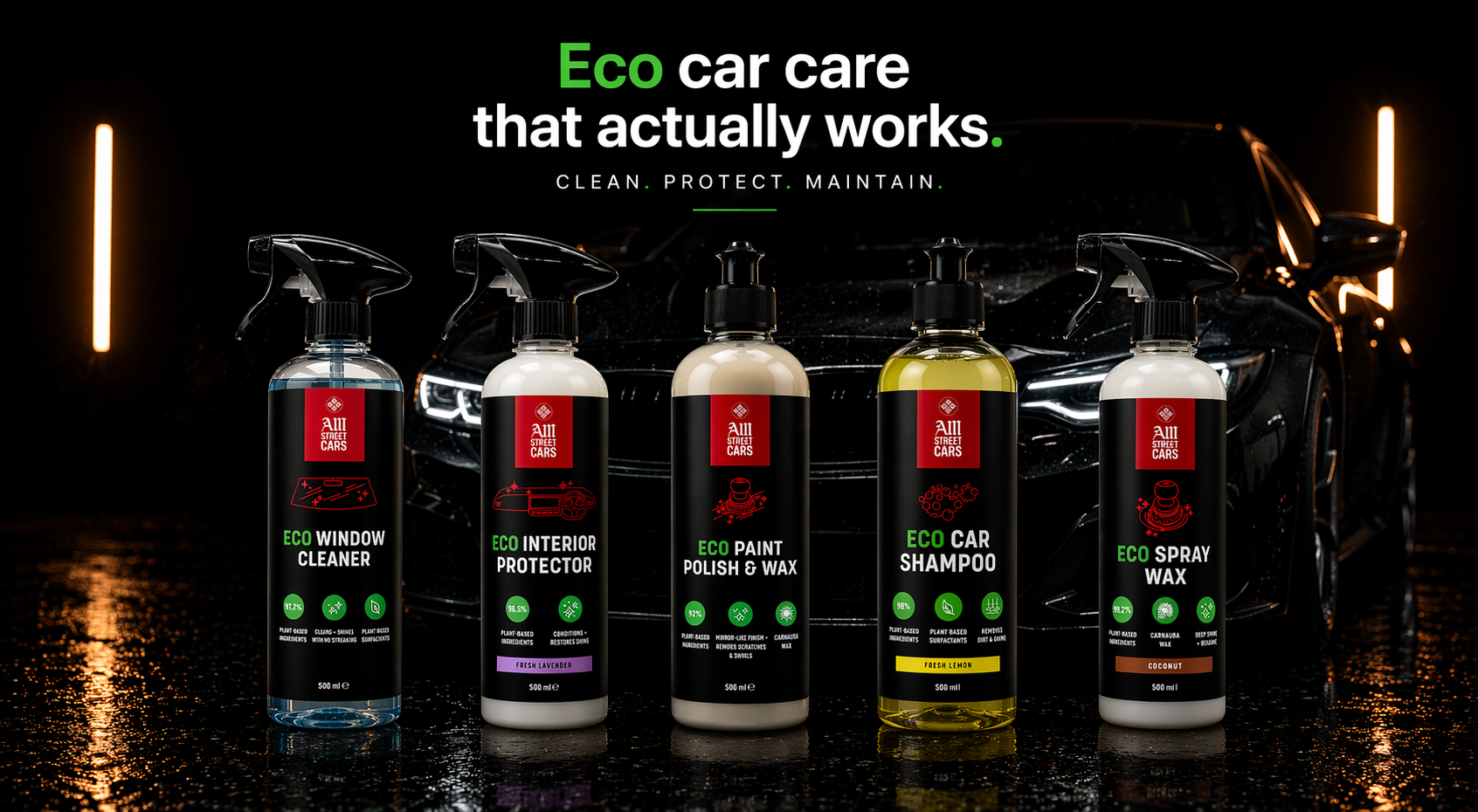 Plant-based car care designed to clean, protect, and maintain without the harsh chemical feel of traditional products.
